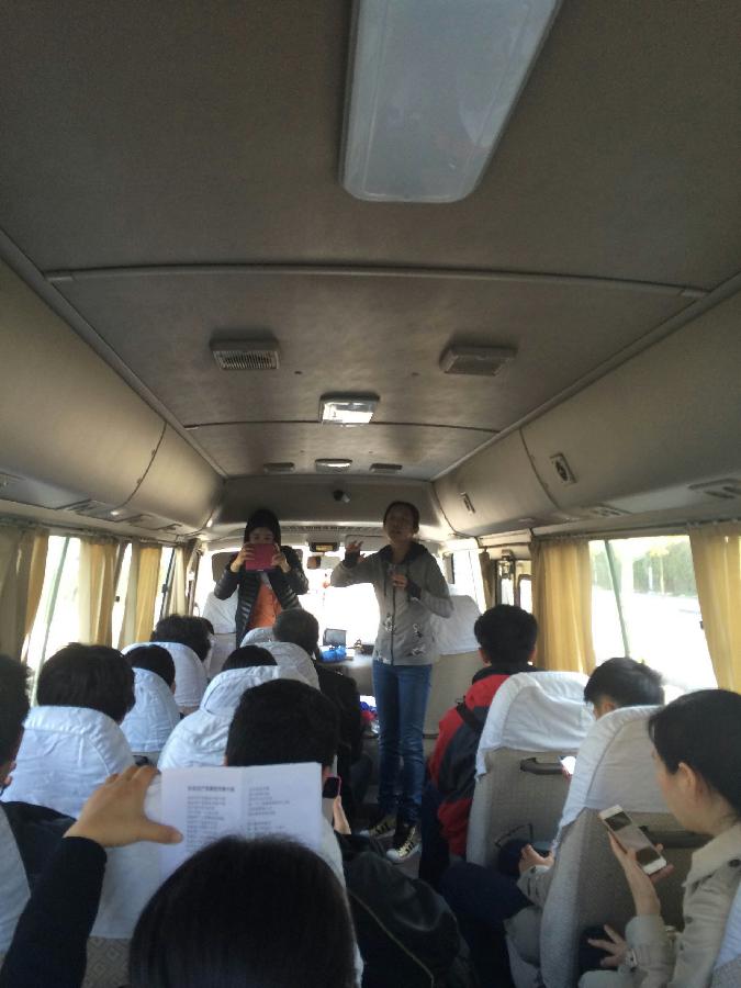 在前往中国人民抗日战争纪念馆的途中,财税学院分工会在李蕾老师的指挥下,反复练习参赛歌曲,并在去之前组织各位老师试衣服选尺寸,为即将到来的校工会歌咏比赛做积极准备。