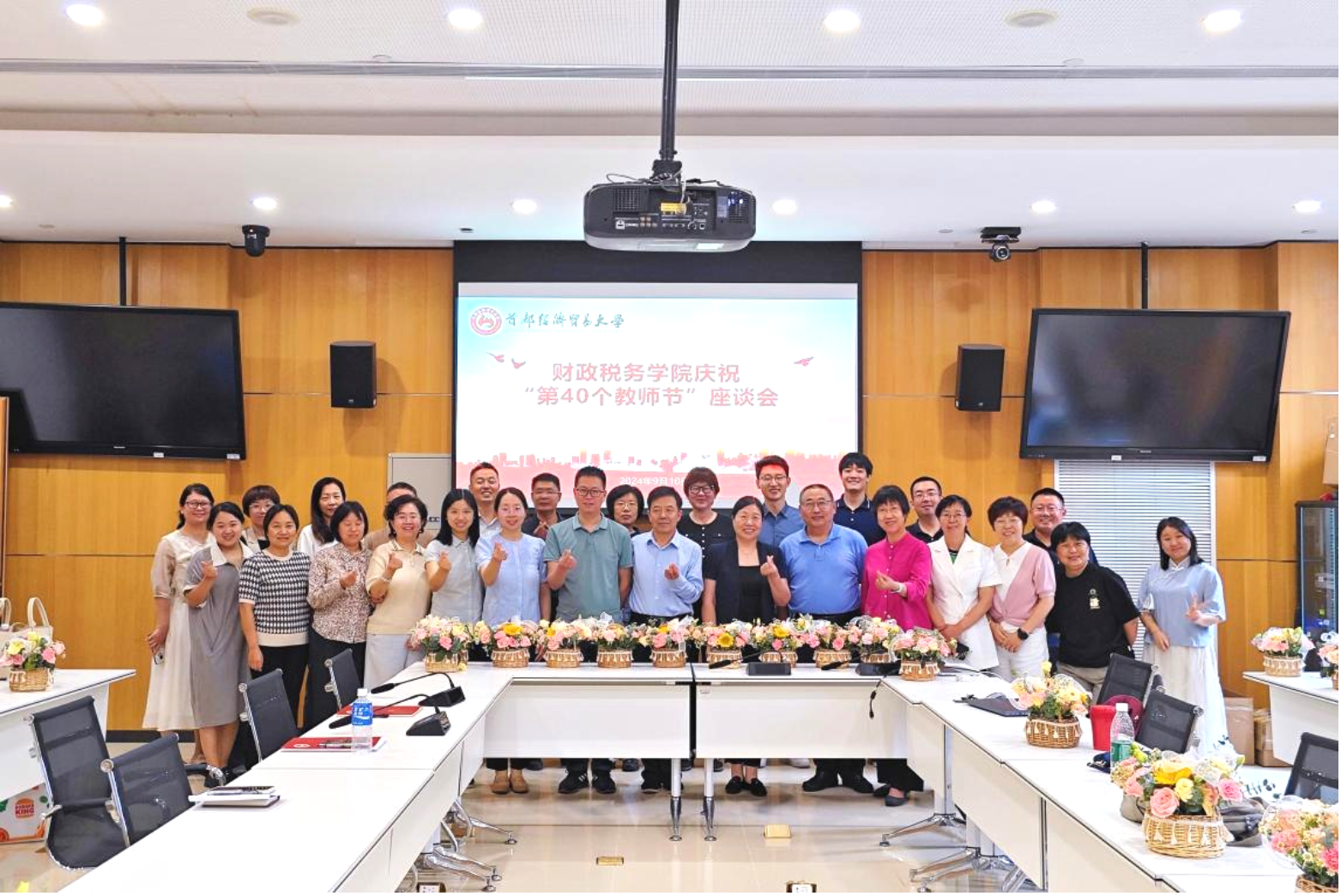 在座谈会环节,刘颖教授、李红霞教授、黄春元副教授以及青年教师代表茹玉博士和武威博士分享了各自的从教体会和经验。刘颖教授在第四十个教师节时回顾了自己四十年的教学生涯,满怀感慨地谈及在这段岁月里的成长与蜕变。她以深沉的思索和感动的语气,结合自身经验,分享了两点体会:一是坚守与传承教育初心,当初选择教师职业时,满怀理想与责任感,渴望通过教育影响学生、培养国家未来;二是深刻理解教师的模范作用,教师不仅是知识的传授者,更是学生人生道路上的引路人,言行举止通过细微却深刻的方式影响学生的思维、人格和未来。李红霞教授表示,从最初毫不犹豫地选择教师职业,多年来不仅提升自身教学水平,还通过不断学习和进修,追求更高的学术成就,最终取得博士学位并成为博士生导师。黄春元副教授则认为,岁月如雕刻刀,虽历经压力与挑战,却为教师们雕刻出健康、平安与丰硕的教研成果。茹玉博士谈到,在财税学院的工作让她感受到幸福、感动与珍惜——幸福于资深老师的帮助和见证学生成长,感动于同事的奉献精神,并珍惜这份职业的神圣使命。武威博士则表示,作为青年教师,能在财税学院这个充满关怀与支持的集体中工作,倍感自豪与感恩。在学院领导的关怀、前辈的无私指导及同事的互帮互助下,深感育人的责任与使命,在教学和科研探索中不断成长,逐步站稳讲台,提升教学质量,并积极追求学术科研的突破与进步。
