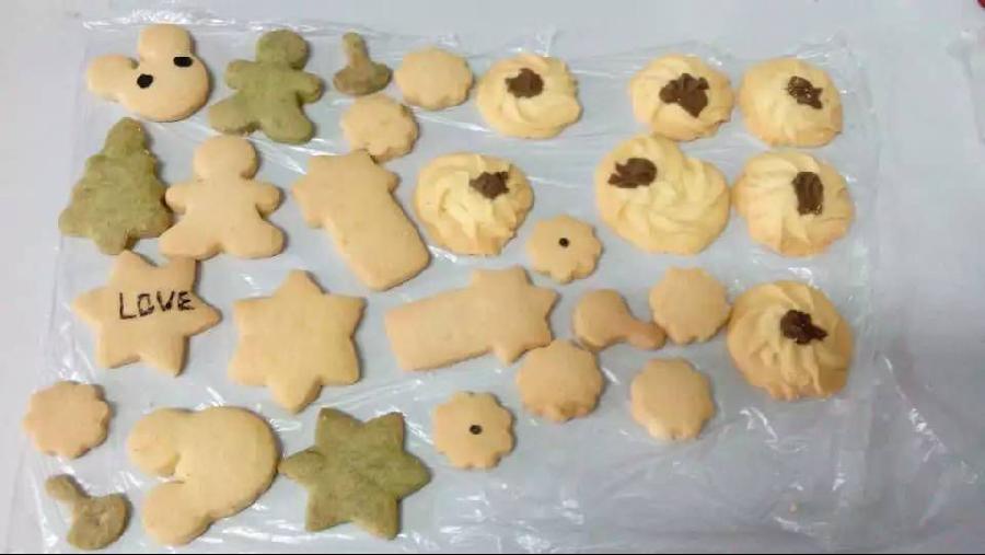 不到12点半,活动现场就热闹起来,参加活动的同学陆续到达。首先在干事们的引导下,同学们领取了手套和口罩,接着每人领了一个面团,开始制作。拿着手中的面团,同学们都跃跃欲试,面粉、抹茶粉和巧克力酱齐上阵。只见同学们使用擀面杖和不同的模具制作出了各种极具特性的饼干,有的人还用巧克力做了点缀。很快一盘盘的饼干制作完成,被送入烤箱。