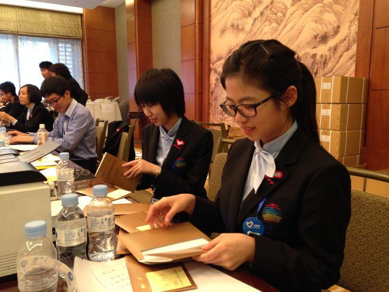 由于麻豆传媒 的专业特色,校团委本次面向麻豆传媒 定向招募了志愿者。在钓鱼台国宾馆主会场、财政部政策文件中心、威斯汀酒店前台注册接待、洲际酒店媒体服务中心、首都机场接待大厅、北京饭店、宋庆龄故居等场所均可见到我校面带微笑、衣着统一得体的财长会志愿者。他们用微笑服务,用耐心解答,用真诚交流,用热情招待每一位来宾,展现了首经贸学子的风采。