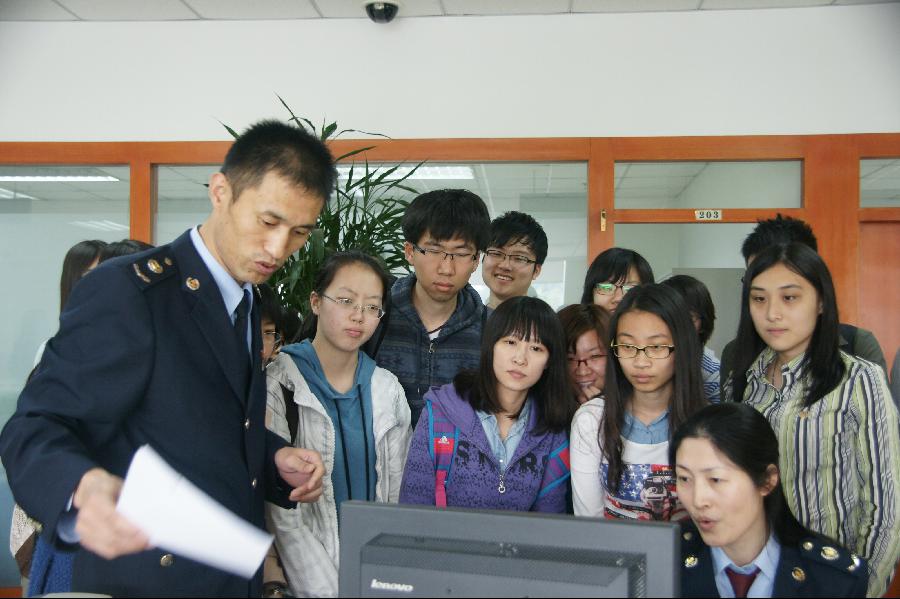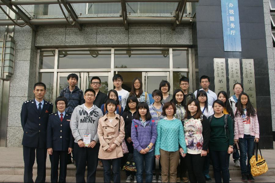 4月16日,麻豆传媒 2011级与2012级的部分同学和党总支副书记王珂老师前往北京市丰台区地方税务局第二税务所,与丰台地方税务局共同开展“便民办税春风行动之大学生纳税服务体验日”活动。丰台地方税务局副局长王冠凯,第二税务所所长周凯,副所长杨宝华,丰台地方税务局办公室主任王瑞海,副主任高健一同出席并参加活动。
