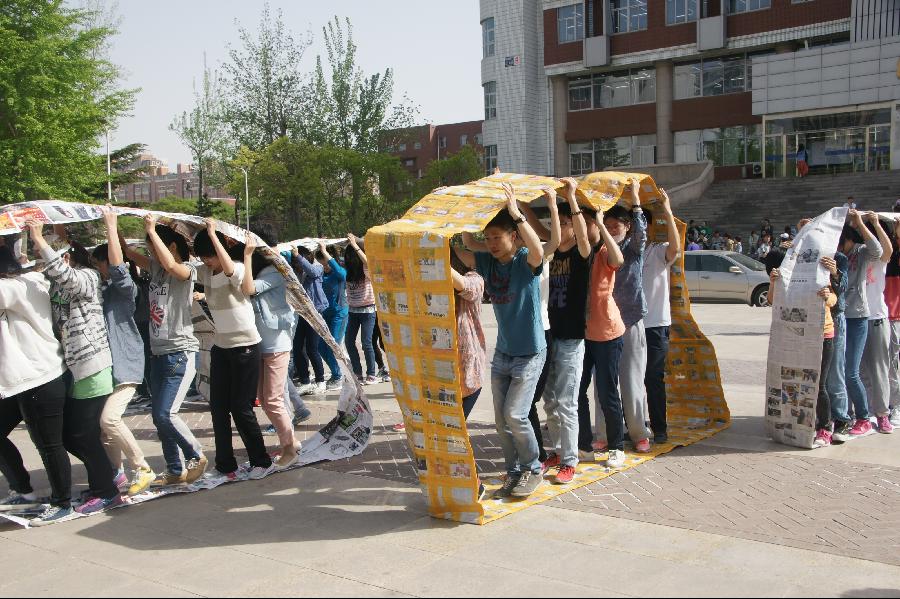 在比赛过程中,有的班级配合默契,在七人手脚高度协调地配合下,队伍如滚滚风轮一般直冲终点;有的班则是在手忙脚乱中乱了方向,混乱中踩烂了报纸,只好遗憾弃权;有的班则是采取平稳策略,一步一步走向终点。
