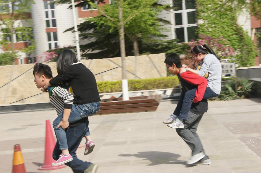 男女夹球跑――引来众多围观