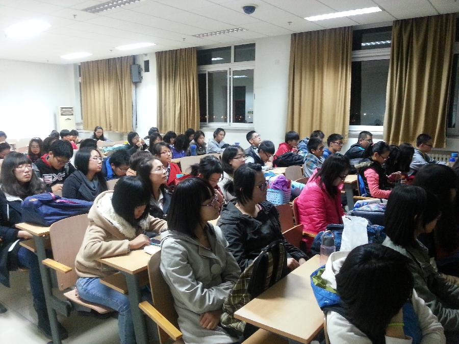 首先,由志愿实践部副部长周雪寒、闫晴向在座同学介绍此次志愿者分享会的主要内容。接着,由2012级志愿者代表进行志愿经验分享。第一个与大家分享经验的是庞婕同学,她为在座的同学们详细的讲述了志愿者们在地铁站进行服务的经历,庞婕同学的介绍让同学们都增加了很多志愿服务常识。接下来杨圣明同学为大家分享了在松堂医院的志愿服务经历,谈及这些经历,他感触颇深。杨圣明同学的生动介绍吸引着台下每位同学,大家都在聚精会神地听着。