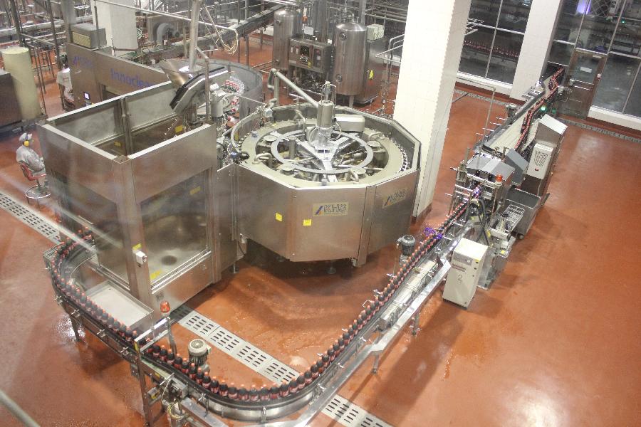 同学们在可口可乐公司工作人员的带领下走进了可口可乐工厂,参观了生产线。工作人员介绍说:“这边的圆盘机器每转一圈,便会完成80瓶雪碧的灌装,1小时生产量大约3000箱,1年就是6万吨了。”同学们惊叹不已,自动化的机器竟然有如此高的效率。而易拉罐饮料的生产效率更高,一罐饮料在短短的2分钟内就能完成灌装、封盖、洗瓶、温瓶、烘干、装箱的程序,装上叉车运往仓库。整个生产车间只有几名工人,机器几乎完成了全部的生产工作。得知我们是麻豆传媒 的学生,工作人员特意向我们介绍,从美国出口到中国的可口可乐的浓缩汁,经过中国工厂的加工出厂的价格,含有关税约10%、增值税17%、所得税20%,形成了中国政府的税收。自1992年可口可乐公司在北京成立,公司利税总额达5.3亿,被评为北京经济技术开发区十大纳税企业。