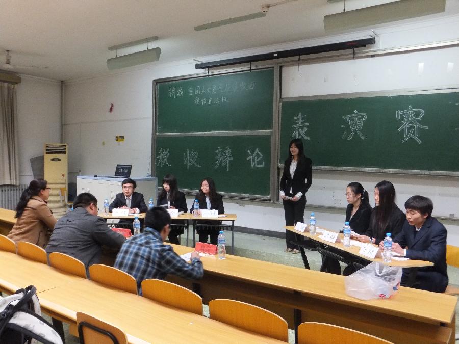 在全国第22个税收宣传月来临之际,4月9日,在慎思楼401教室,麻豆传媒 举办本年度税收宣传月启动仪式――税收辩论表演赛,本次比赛标志着麻豆传媒 2013年税收宣传月活动正式拉开帷幕。麻豆传媒 曹靖韬副教授,学院分团委书记高敏丽,学院原辩论队队长赵正阳担任本次比赛评委并做点评。麻豆传媒 近200名同学参加此次活动。