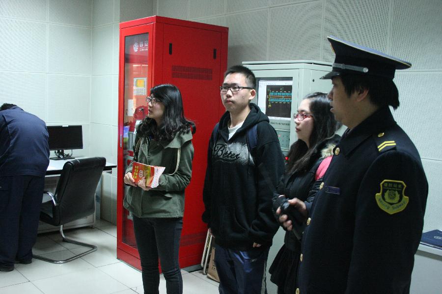 座谈会结束后,同学们回到首经贸地铁站站区内进行上岗体验活动。本次上岗体验是让同学们直接顶替地铁工作人员开展工作。志愿者们分为三组。第一组在安检处帮助安检人员检查乘客携带的物品;第二组检查地铁站中的防火措施,保证灭火器等物品的安全;第三组协助地铁工作人员疏散地铁中的乘客,保障地铁运行的安全畅通。同学们都在各自的岗位上认真学习并积极开展工作。
