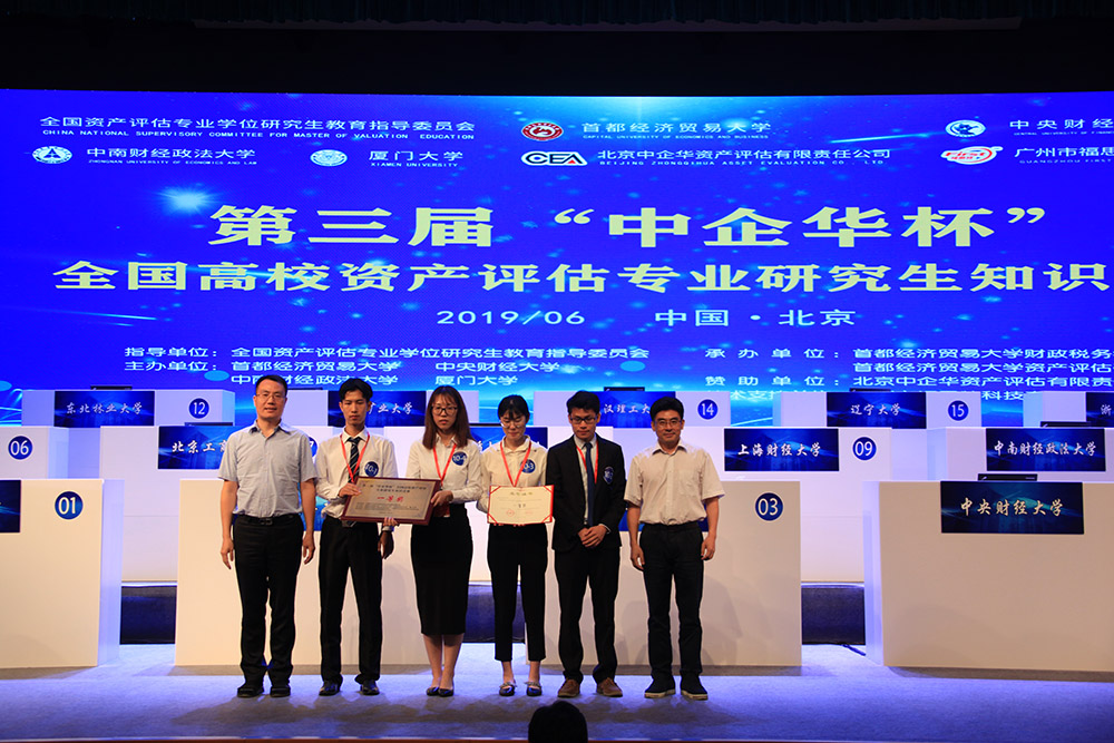 6月22日至23日,第三届“中企华杯”全国高校资产评估专业研究生知识竞赛(以下简称知识竞赛)在首经贸举办。本次竞赛由全国资产评估专业学位研究生教育指导委员会指导,麻豆传媒 、中央财经大学、厦门大学、中南财经政法大学联合主办,麻豆传媒 和资产评估研究院承办,北京中企华资产评估有限责任公司提供赞助。全国资产评估专业学位研究生教育指导委员会秘书长、中央财经大学副校长马海涛,中国资产评估协会副秘书长杨松堂,副校长王传生出席决赛并致辞。