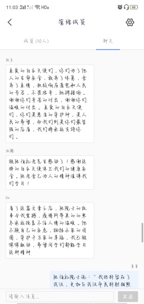 首先,2018级税收一班团支部组织团员同学阅读《“把胆留在武汉”的张伯礼院士哽咽了,网友:泪目致敬》。在这篇文章中,详细地讲述了了张伯礼院士因为高强度的工作而导致胆囊炎不得不接受胆囊摘除手术,依然坚持在抗“疫”一线指导的事迹。张老所呈现的强烈的责任感与无私奉献的精神令我们深深动容。学习完这篇文章后,同学们感受颇深,纷纷发表自己的感想。有的同学认为:关键时刻站得出来,危机关头冲锋在第一线,布防在最前沿、履职在最险处,面对疫情,正是许许多多像张老这样的战士,让人看到希望。也有的同学认为:这次疫情让我看到各个领域的工作人员们都奋不顾身地尽自己所能为国家献力,令我们赞叹!