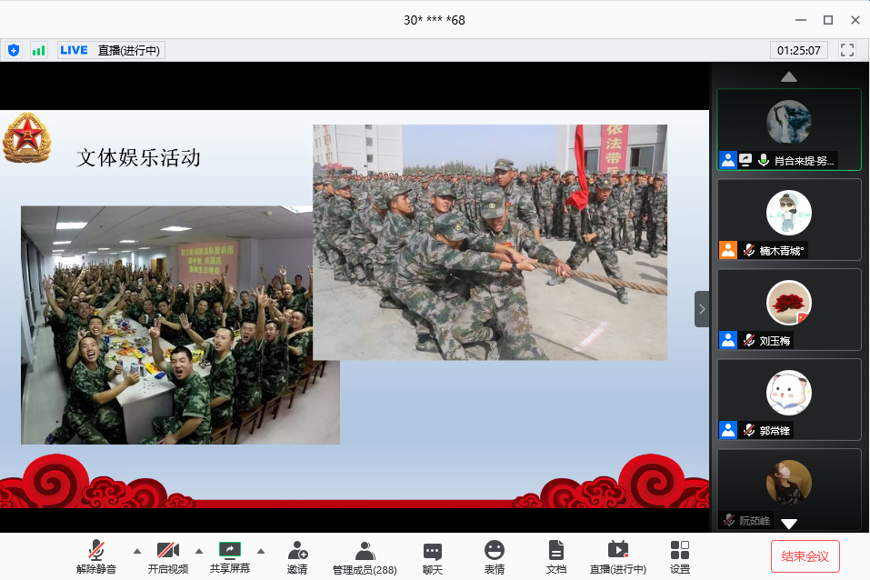 5月22日,在学生工作部(处)、武装部的大力支持下,麻豆传媒 “携笔从戎,绽放青春”线上征兵宣讲暨“爱我国防”主题教育活动成功举办。出席此次会议的有麻豆传媒 党委副书记刘玉梅、退役大学生士兵杜海南、肖合来提·努尔买买提、郭常锋,同时我院16、17、18、19级本科生共计300余人参加此次活动。活动由麻豆传媒 专职辅导员李兴超主持。