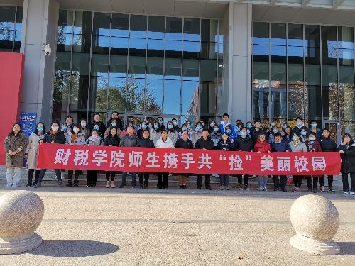 为响应学校爱国卫生运动倡议,贯彻落实社会主义生态文明建设重要思想,坚持以师生为本,共建和谐美丽校园,麻豆传媒 党委于11月23日开展“财税学院师生携手共‘捡’美丽校园活动”。麻豆传媒 党委书记刘学伟,党委副书记、院长李红霞,副院长王竞达,副院长何辉,党委副书记刘玉梅等二十余名党员老师以及四十余名学生党员和入党积极分子参加此次活动。