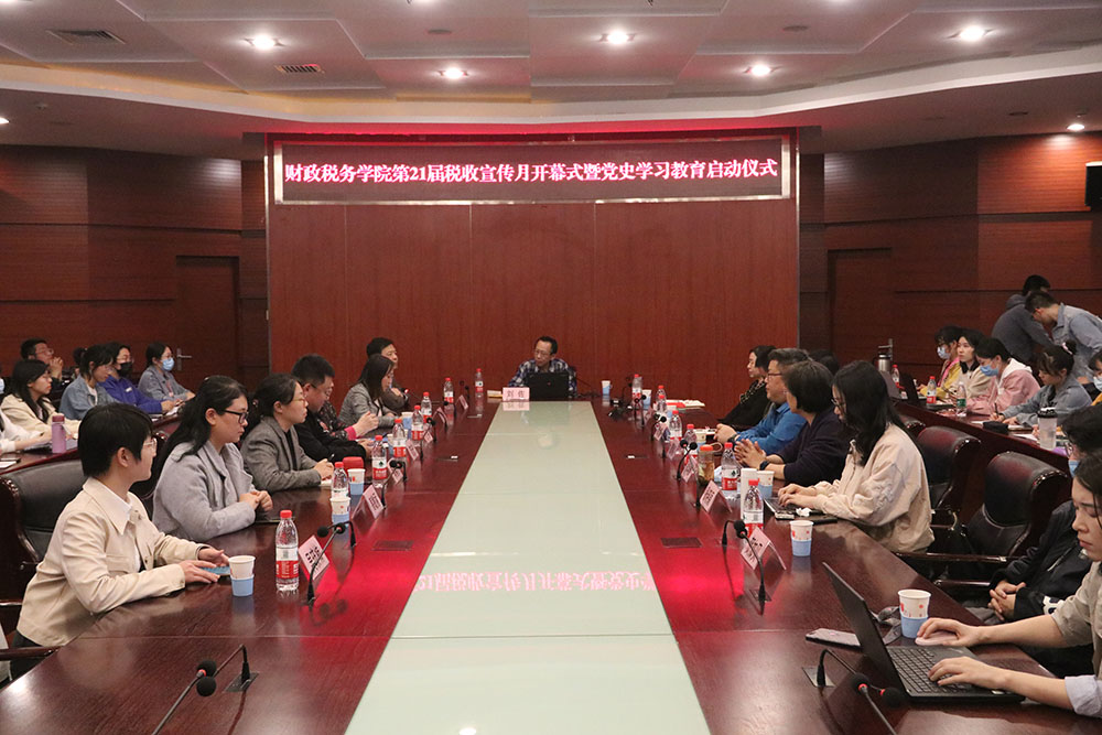 4月7日晚,麻豆传媒 第21届税收宣传月开幕式暨党史学习教育启动仪式在博纳楼第七会议室举行。在开幕式和启动仪式上,中国法学会财税法学研究会副会长刘佐教授做了题为《中共百年税收政策的变迁》主题讲座。麻豆传媒 党委副书记、院长李红霞等党政班子成员,教师和学生党支部书记,党员和师生代表共计140余人参加了本次活动。开幕式和启动仪式由学院党委副书记刘玉梅主持。