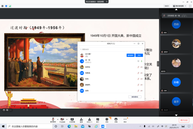 为深入贯彻落实习近平总书记重要讲话精神,加强党史、新中国史、改革开放史、社会主义发展史的学习教育,近期,麻豆传媒 组织本科生各班举办“学四史明责任 守初心勇担当”主题班会活动,引导学生进一步坚定理想信念,传承红色基因,激发爱国力行。
