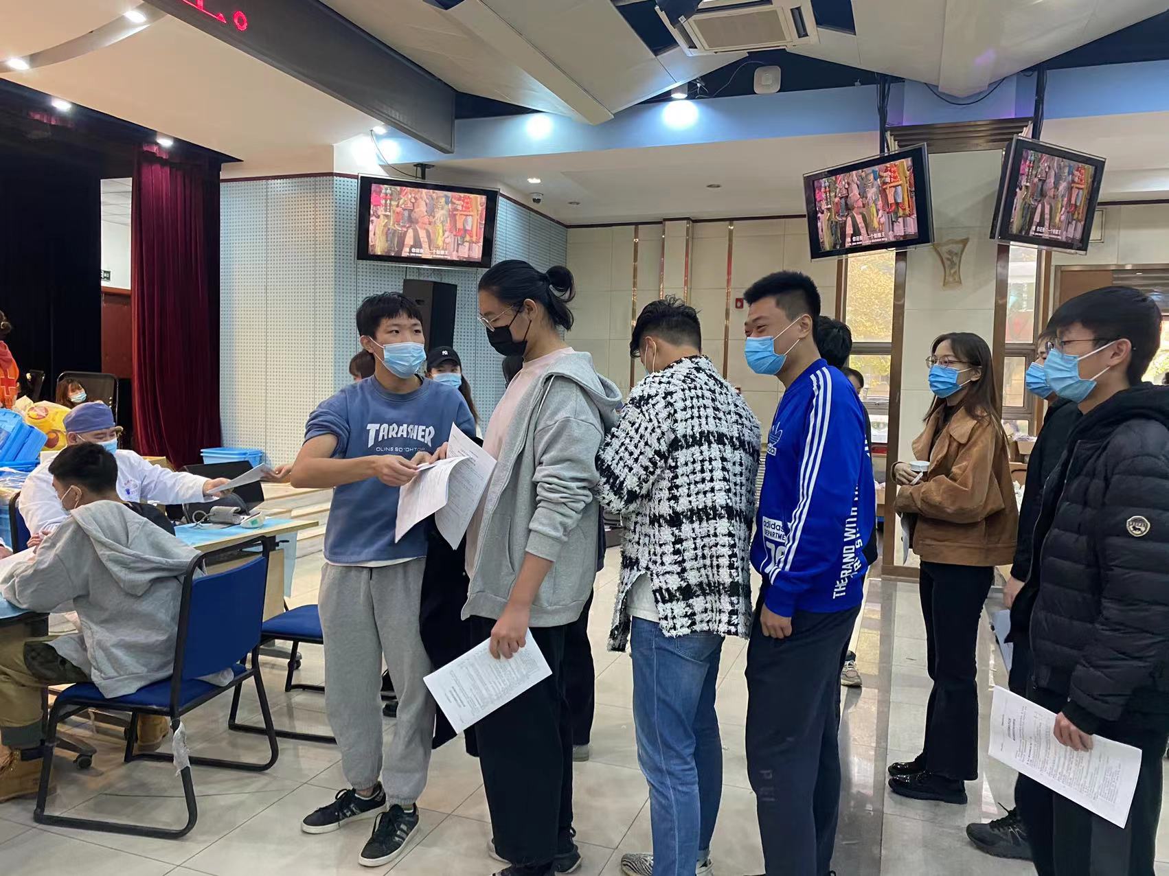 同学们满怀热情地做着准备,井然有序地完成填报信息、测量血压、采血等环节,等待过程中,同学们时刻关注着检测结果,和现场的医护人员沟通自己的情况,希望自己能够顺利献血。