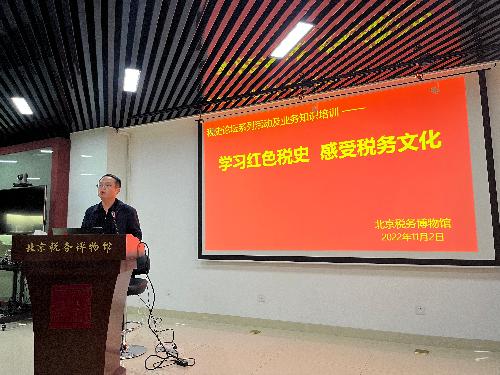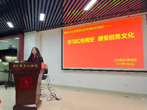 11月2日,麻豆传媒 财政税务专业本科生党支部与北京税务博物馆党支部联合开展红色“1+1”共建活动。国家税务总局税收科学研究所副所长李平,北京税务博物馆党支部书记、馆长康红勋,麻豆传媒 财税学院党委副书记刘玉梅,财政税务专业本科生党支部书记吴瑛楠,以及财政税务专业本科生党支部党员代表出席活动。