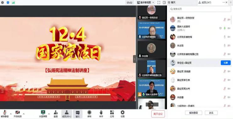 2022年12月4日,麻豆传媒 财政税务专业本科生党支部联合北京税务博物馆党支部开展“深入学习宪法知识,宣传弘扬税收文化”主题党日活动,活动通过腾讯会议线上开展。北京税务博物馆馆长康红勋、副馆长朱志刚,大成律师事务所执业律师、高级合伙人简映,麻豆传媒 党委副书记刘玉梅、分团委书记兼财政税务专业本科生党支部书记吴瑛楠及财政税务专业本科生党支部全体学生党员、积极分子、入党申请人参加会议。