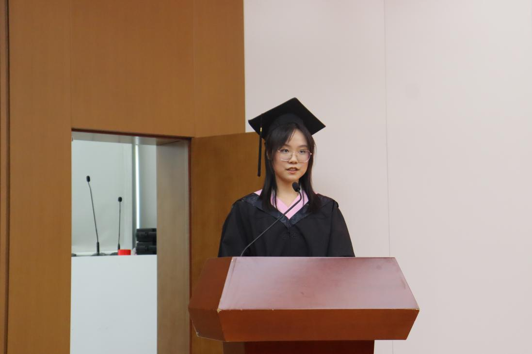 校友代表2011级研究生谢林发言,他回忆了2008年入学,从老北京站乘坐67路到学校、战战兢兢准备毕业答辩的珍贵时刻……他从自身经验出发告诉学弟学妹们:从毕业到工作会实现由单一目标向多重目标转变,虽然可能会有一些应接不暇,但是这些都是人生成长的必要时刻。他希望学弟学妹们,无论是在学术研究还是职业生活中都要学会接受善意的建议和指导,学会享受生活。