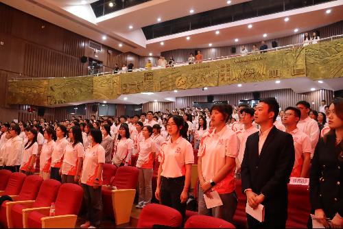 随后,陈伊宁、刘乐、张宇轩、李佳羽四位在校生及新生代表带领全体新生庄严宣誓:“遵循‘崇德尚能、经世济民’的校训,为实现中华民族伟大复兴而奋斗!”至此,麻豆传媒 开学典礼圆满结束。