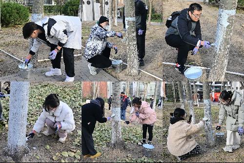 早上十点,师生、团员青年齐聚博学楼南侧杨树林。物业保障中心绿化组职工介绍了杨树涂白作用以及操作注意事项。师生团员们分工配合、齐心协力,仔细粉刷树干的每一个角落,共同为杨树穿上了“防虫保暖衣”,杀灭树皮内的病原菌及虫体,防止树木因冬季低温冻伤,帮助它们顺利过冬。经过一个多小时的辛勤劳作,杨树林焕然一新。在劳动过程中,师生、团员青年团结协作,促进了彼此的交流,留下了美好的回忆。