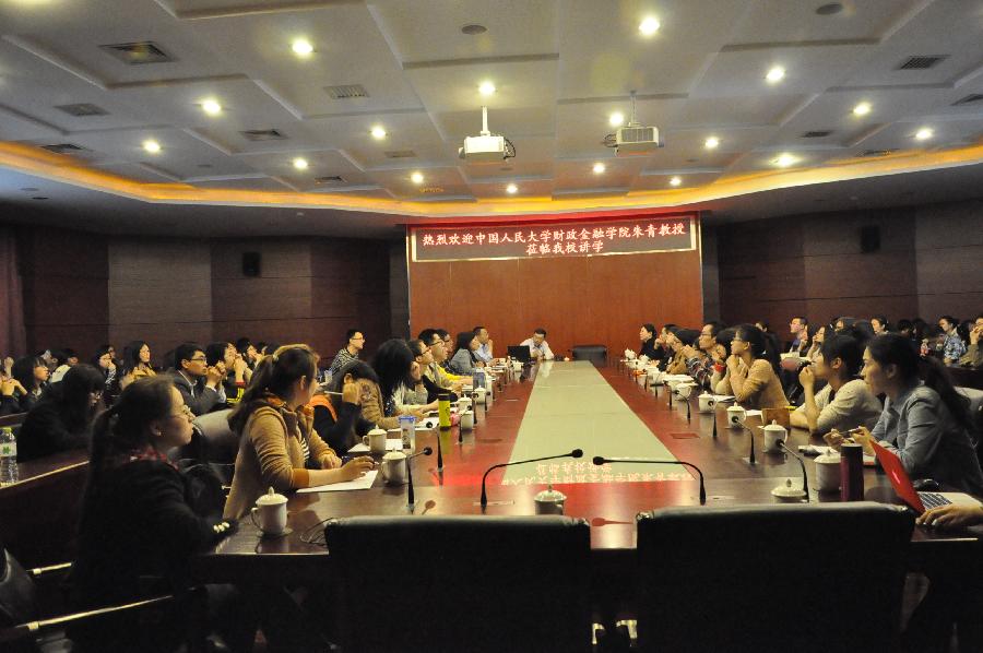 在博纳楼五层第七会议室召开学术报告会,有幸邀请到著名财税专家、中国人民大学财政金融学院学术委员会主席、博士生导师朱青教授来我校讲学。参加讲座的有姚东旭院长、李红霞书记、蔡秀云副院长、丁芸教授、赵书博教授、王海南老师等以及麻豆传媒
