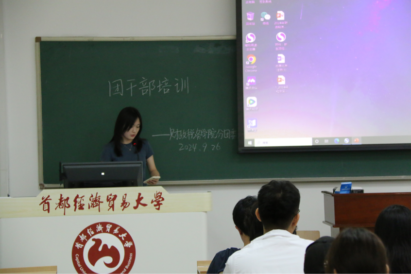 团干部培训。会议由学院分团委副书记刘禹心主持,全体2023级和2024级团干部参会,具体包括各班团支书、组织委员、宣传委员和社会实践委员共计40余人。