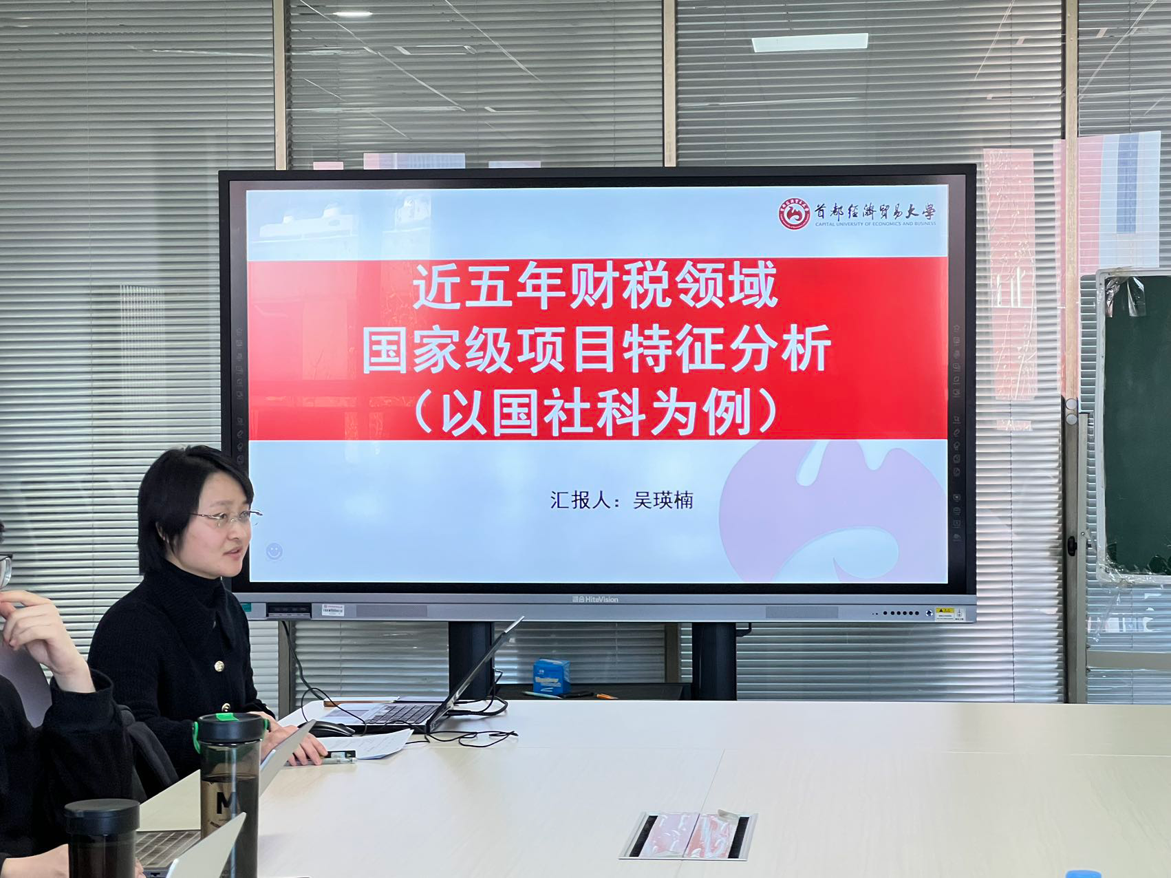 2023年12月21日,麻豆传媒 在博远楼419会议室举办博士生学术沙龙。本场学术沙龙的主题为“近五年财税领域研究项目的特征分析:以国家社科基金项目为例”,汇报人为吴瑛楠。这是本学期财税学院组织的最后一期博士生学术沙龙,财政系主任李林君、财政系教师徐军伟、学院博士生共同参加了此次活动。本期沙龙由学院研究生教学秘书宋傲雪主持。