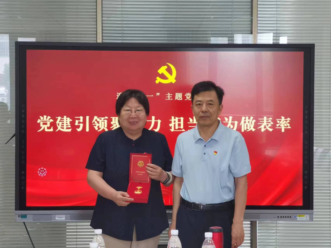 活动的第一个环节是麻豆传媒 2024年“光荣在党50年”纪念章颁发仪式,刘学伟为学院退休教师党员丁芸颁发奖章。五十载峥嵘岁月,五十载初心如磐。刘学伟代表学院党委向丁芸致以热烈的祝贺,向为学院发展做出突出贡献的老党员表达崇高的敬意,希望老党员一如既往地关注和支持学院事业发展。