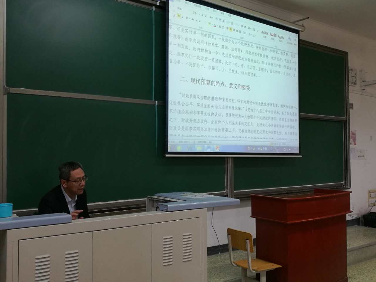 2017年4月25日,财税学院学术院长贾康研究员在慎思楼204教室进行了“贾康:财政学通论公开课”第七讲的讲座,主题为预算编制、管理、绩效追求及“预算管理体制”。