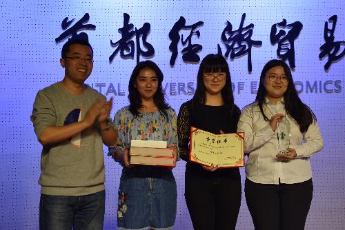 最终,迎来了激动人心的颁奖环节,经过评委们对每个代表队内容,表演,知识点解说等方面的评分,确定了各项奖项:2015级财政班荣获第四名最佳组织奖、2017级研究生班荣获第三名最佳风采奖、2015级税收卓越班荣获第二名实力专业奖、2015级税收全面班荣获第一名综合优胜奖。在此,再次恭喜以上获奖班级!