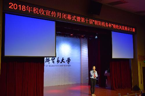 紧接着,北京市朝阳区地方税务局,党组副书记、副局长隋庆梅女士发言。她谈到十九大对税收制度的进一步部署提高了国民的税收意识,肯定本次活动也发挥了宣传教育作用,有重大意义。她期待同学们能继续保持这份爱国爱税的情怀,勇于创新的魄力和将理论和实践相结合的思想,共同促进首都经济发展。之后,隋庆梅女士宣布,麻豆传媒 第十届“朝阳税务杯”税收风采展示大赛正式开始!