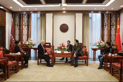 11月14日下午,校党委常委、副校长丁立宏教授在博远楼和畅厅会见了美国佐治亚州立大学安德鲁•扬政策研究学院高级客座研究员罗伯特•埃贝尔(Robert D.Ebel)博士。