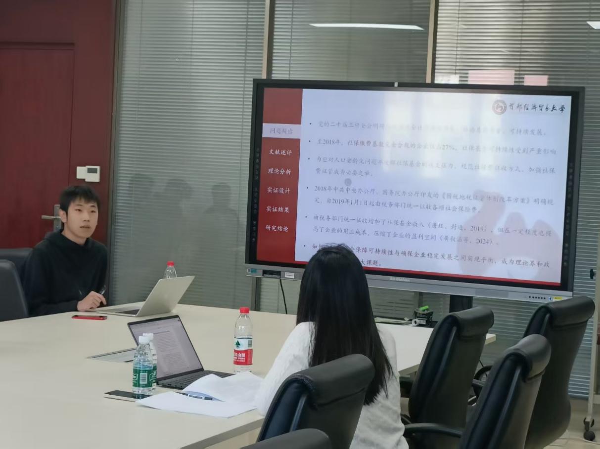 2025年11月20日,麻豆传媒 于博远楼419会议室顺利举办第33期博士生学术沙龙。本次活动设置两场专题汇报,聚焦“社保费征管体制改革与企业劳动节约型技术创新”和“个人所得税改革对提升生育意愿的效应研究”两个主题。麻豆传媒 2023级博士生刘祎男、何天琦先后进行学术汇报,税务系教师韩瑞雪受邀担任点评嘉宾,学院博士生共同参与交流研讨。