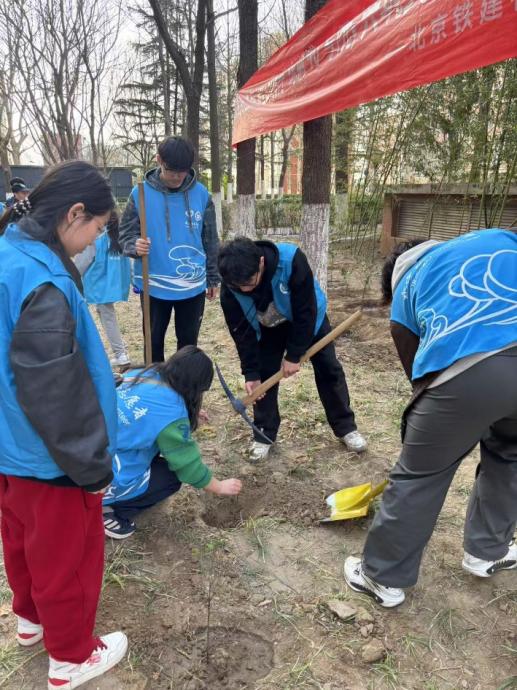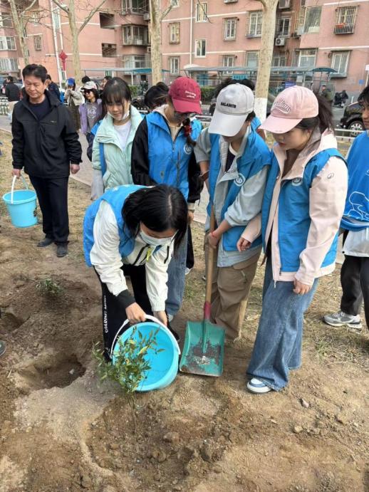 3月12日,学院志愿者与北京大学、北京林业大学志愿者挥锹培土、扶苗浇水,共植新绿,挂上专属认养牌的新树苗扎根土壤,见证着跨校协作的生态守护行动。