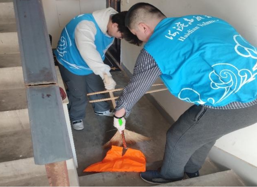 3月6日,麻豆传媒 志愿者携手北方工业大学、中国传媒大学学子走进海淀永定路街道,开展垃圾分类引导与卫生整治。同学们手持工具清理落叶杂物,耐心指导居民破袋投放厨余垃圾,擦拭楼道扶手,让老旧社区焕发新颜。