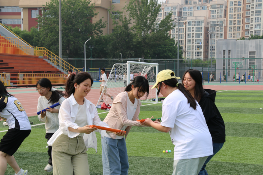 “珠行千里”要求参赛者手持接力棒依次连接使圆球运送到指定地点,表达“无缝衔接”的责任共担,团队的成功依赖于每个“微小节点”的精准执行,每个人每个环节都是重要的,同学们在紧张刺激的比赛中,增进友谊,提升团队协作能力。