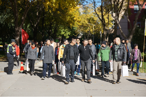 值年返校活动当天,校友们到签到台签到领取了首经贸校友会及财税学院提供的宣传册和纪念品后,便在值年返校的主会场稍事休息,等待大会正式开始。校友们或在广场上与老师们谈心、合影,或一起在老照片墙上找寻自己当年的英姿。有的校友带着爱人、孩子一起回校看望老班主任,聊到自己上学时的趣事,与老师和同学们激动地拥抱,仿佛时光停滞,还是当年青春韶华的模样。
